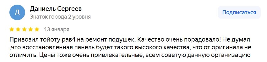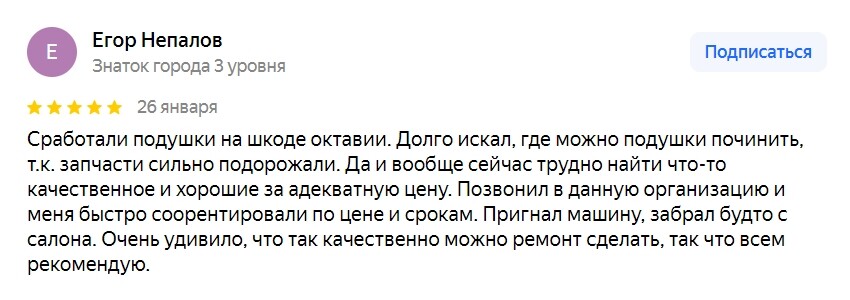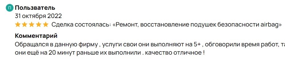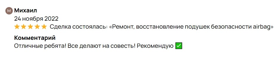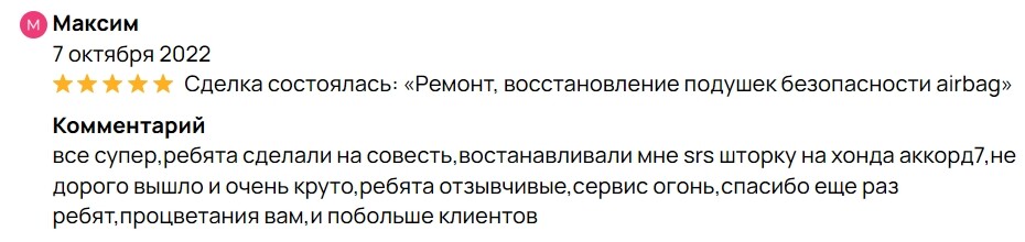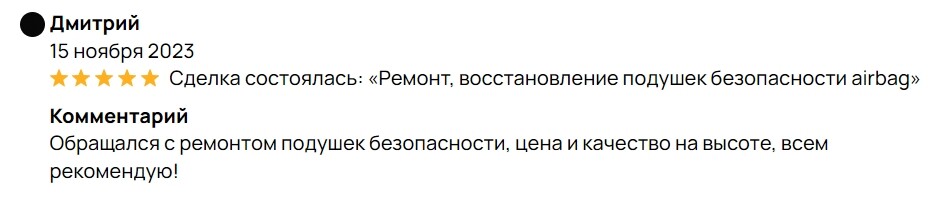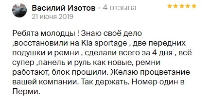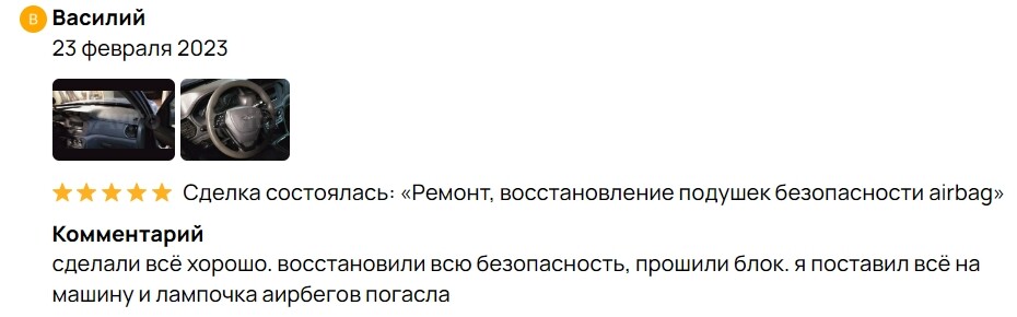 В большинстве автомобилей, при срабатывании подушек, блокируются ремни безопасности. Мы восстанавливаем их работоспособность, чтобы ремни снова могли блокирываться при резком торможении. Кроме того, в большинстве ремнях установлены пиропатроны, которые выполняют роль натяжителя - при срабатывании подушек, ремни притягивают пассажира к спинке сидения. Эти пиропатроны также меняются на новые.