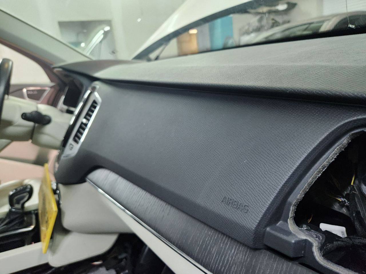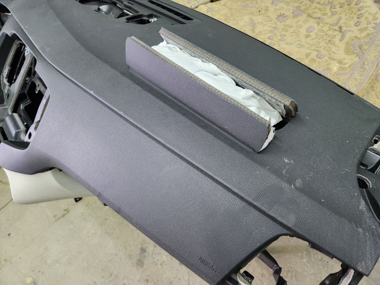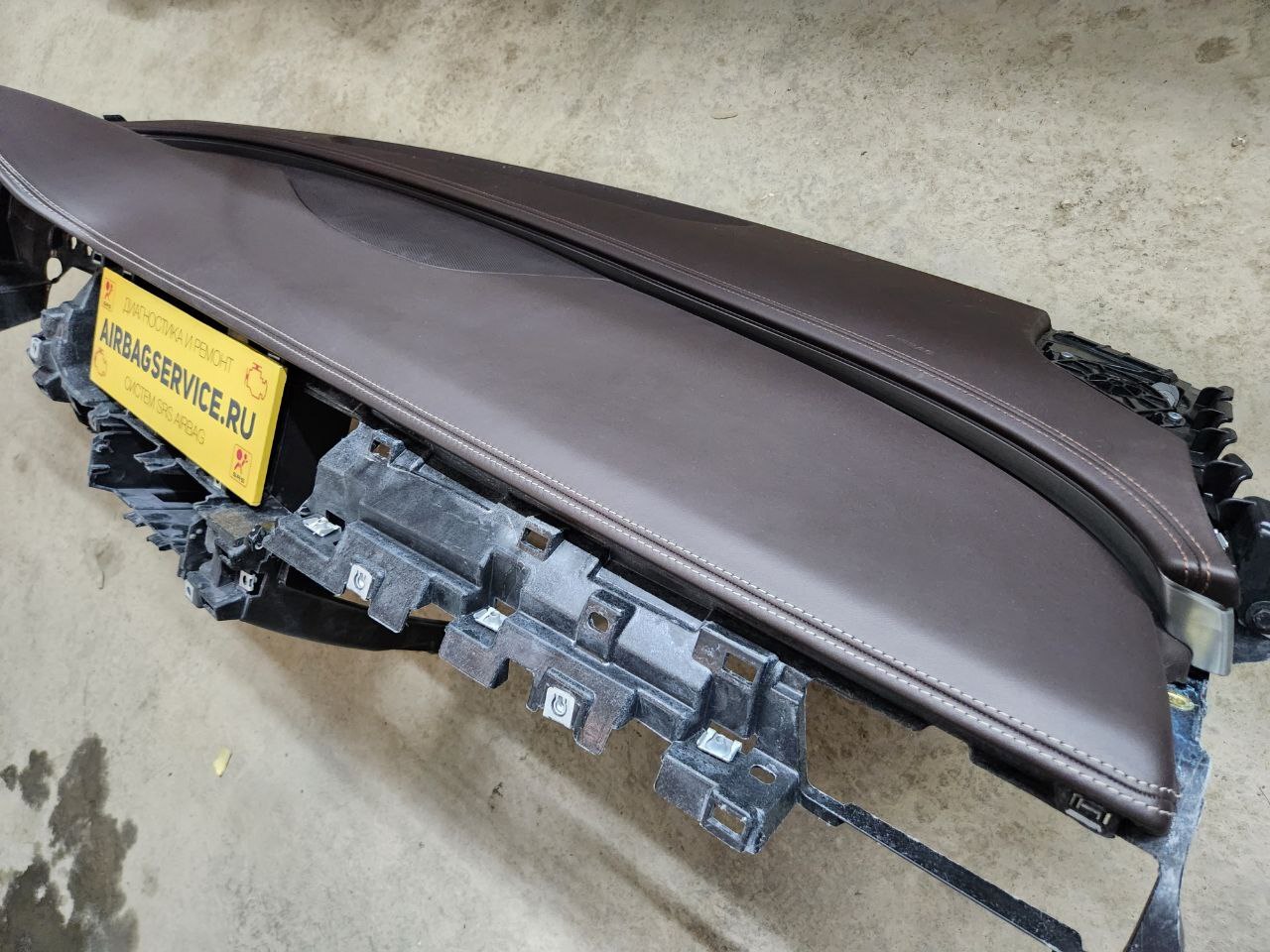 Некоторые автомобили оборудованы подушкой безопасности в коленях (надколенник/knee airbag). И на некоторые уже выпускаются новые крышки, поэтому достаточно просто заменить ее, как рулевую, и поменять пиропатрон. Но чаще всего крышку необходимо восстанавливать. Для ремонта также используем специальную шпатлевку и пластифицированную кожу.