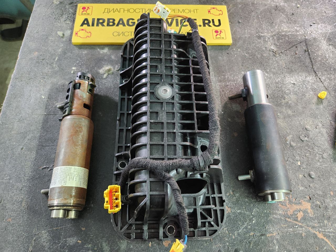Чтобы подушка безопасности раскрылась, в ней используется пиропатрон. Он за доли секунды наполняет подушку безопасности воздухом. Мы устанавливаем новые оригинальные пиропатроны в руль, торпеду, сидение, шторку, коленную подушку и в ремни безопасности. Также, в случае оплавления контактной группы, меняем ее на новую.
