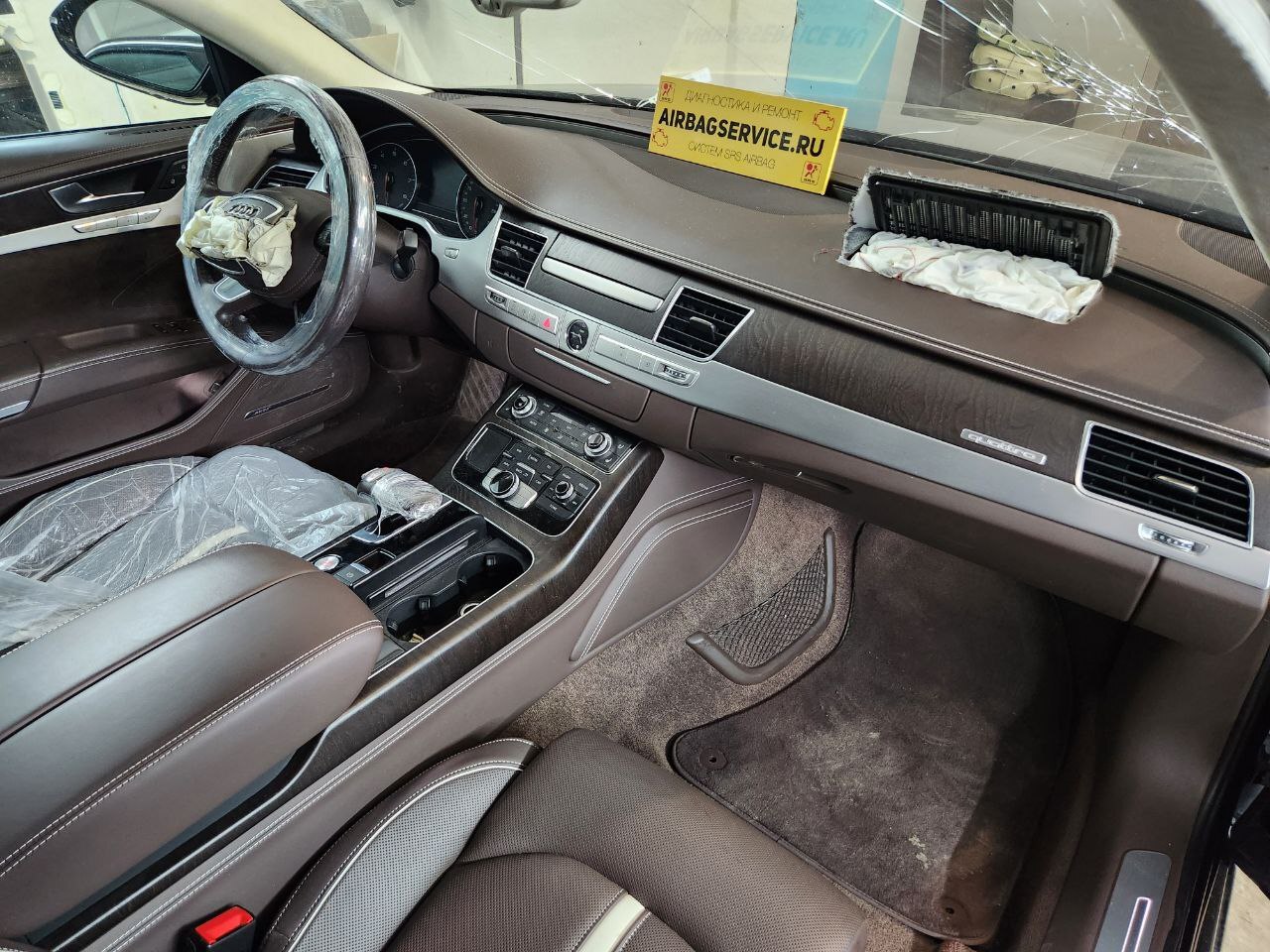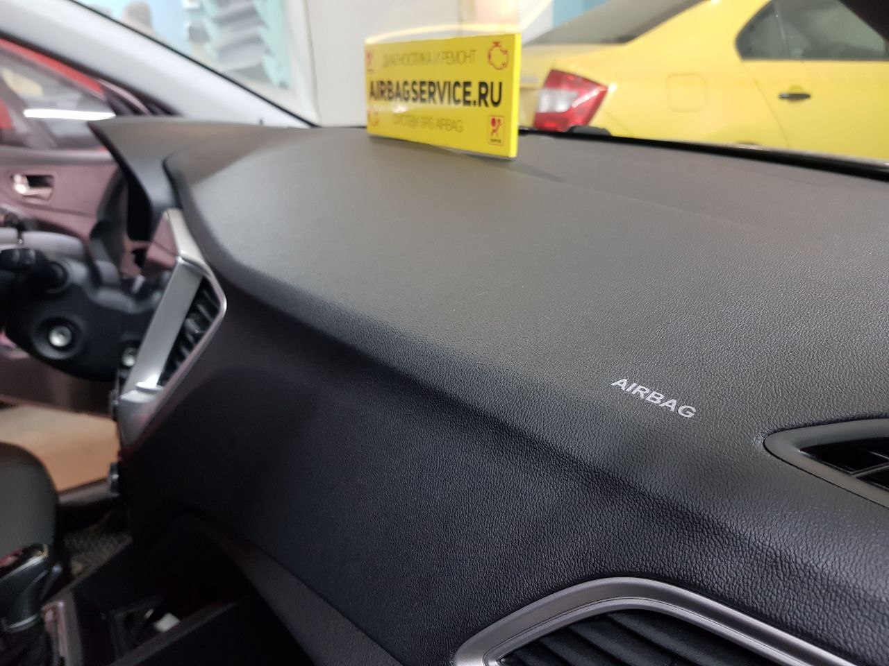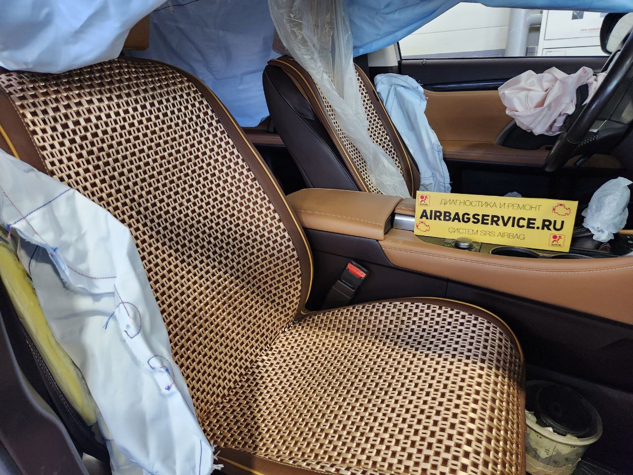 При срабатывании подушки безопасности сиденья, разрывается ткань/кожа (в зависимости от автомобиля). Сперва мы снимаем обшивку, зашиваем место разрыва по заводскому шву, а в саму подушку устанавливаем новый пиропатрон, чтобы она могла повторно раскрыться.
