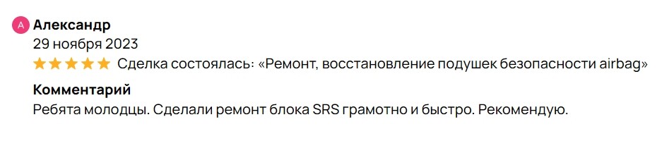 Блок управления airbag (блок srs) отвечает за всю систему безопасности целиком. После срабатывания любой подушки, в него попадает запись о столкновении, в результате чего он становится неработоспособным. Чтобы это исправить, мы прошиваем блок - удаляем из него данные о столкновении, после чего он становится рабочим и снова сможет выполнить свою функцию. Подробнее...
